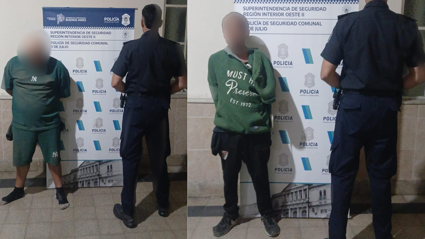 Los sujetos fueron identificados como Marco Antonio Francisquez, de 29 años, y Juan Manuel Rodríguez, de 24, ambos domiciliados en 9 de Julio.